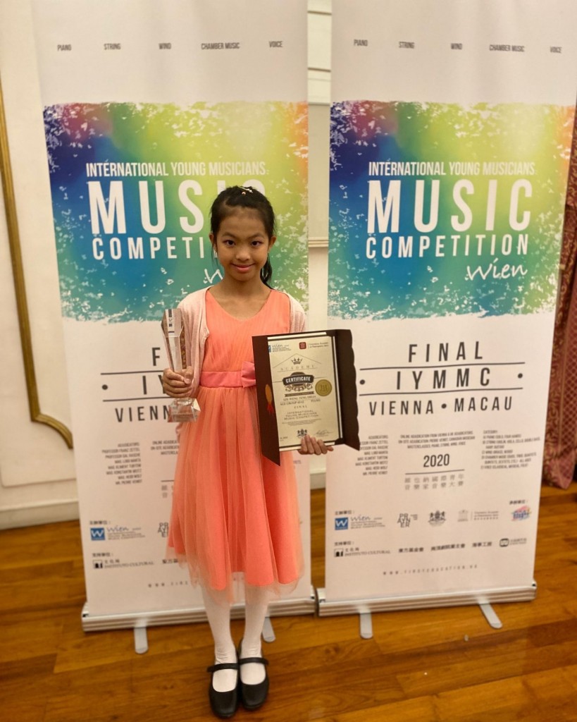 「IYMMC 維也納年輕音樂家音樂大賽—澳門站總決賽」於10月25日在崗頂劇院舉行,本校小五善班施詠婷榮獲澳門站大賽唯一一個Perfect Score(100分),成績驕人,為澳增光。她獲邀於2021年到維也納普萊納音樂學院參加決賽及優勝者音樂會。