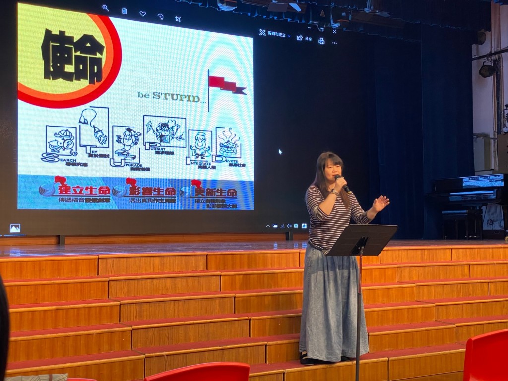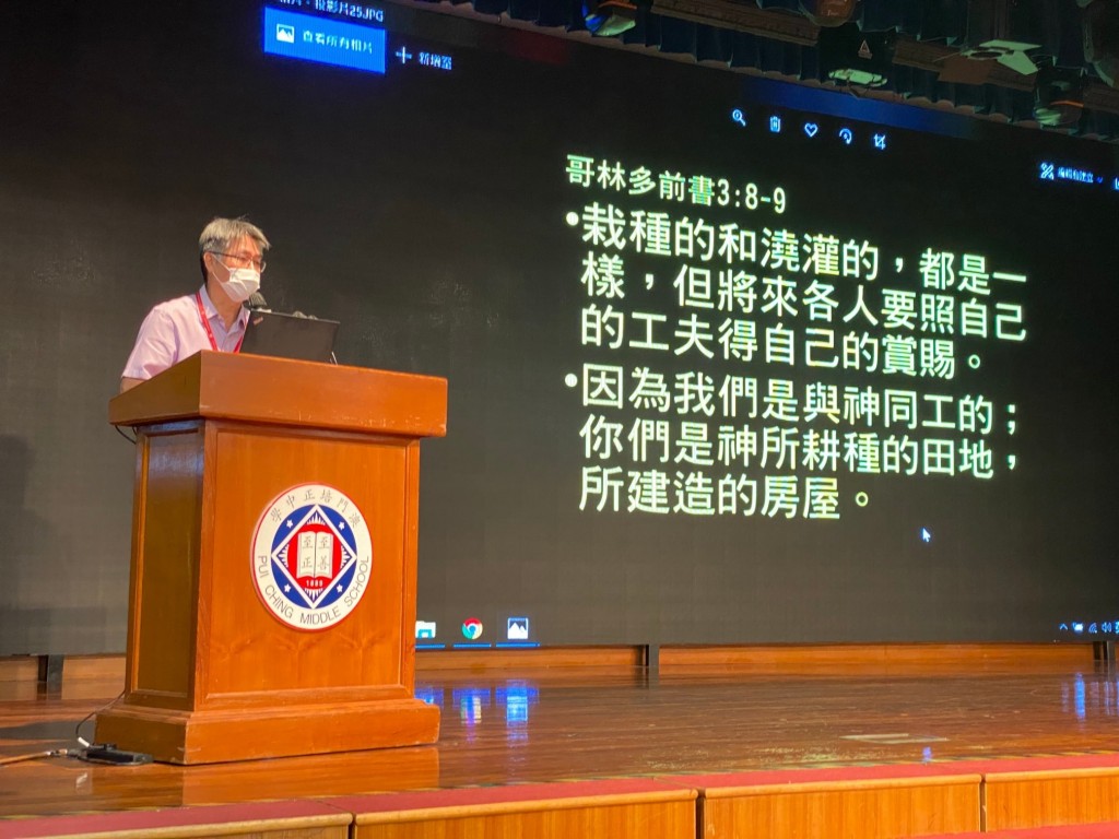 在昨日的教職員靈修會上,於拉撒路青少年中心侍奉的李佩娟校友(1990年騰社) 與老師們分享神如何帶領她過去在宣明會和拉撒路青少年中心為神作工,神如何模造她,使用她去幫助青少年人成長;她亦邀請了該中心的許至琦總幹事與老師分享聖經的話,鼓勵老師們要自我肯定、自愛自強去培育學生成長,並經歷「施比受更為有福」的道理。