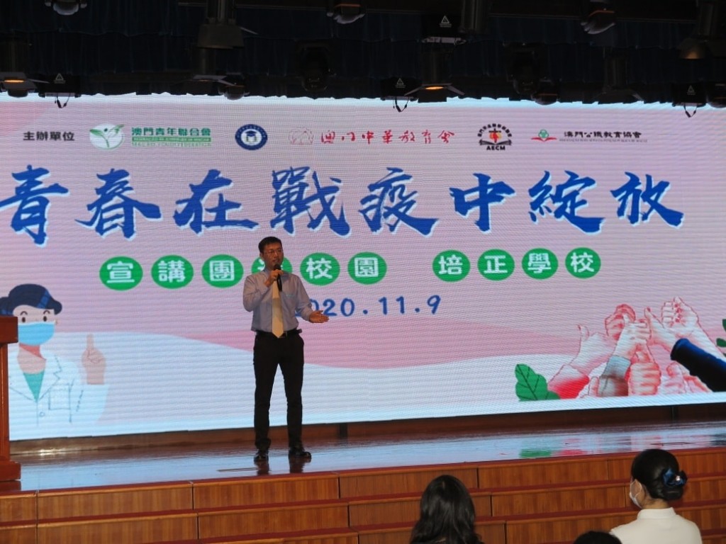 今日上午,由澳門青年聯合會、澳門高等教育發展促進會、澳門中華教育會、澳門天主教學校聯會、澳門公職教育協會聯合組織之“青春在戰疫中綻放”澳門宣講報告會在本校舉行。