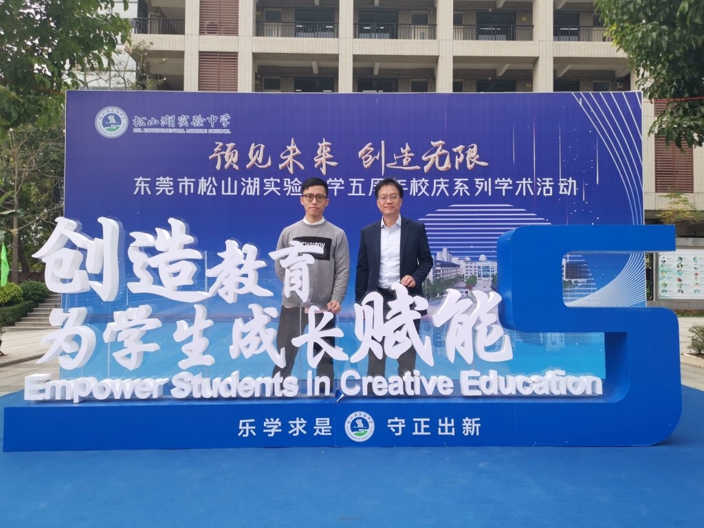高錦輝校長與AR/VR/MR技術探究課程總監溫紫峰老師,出席姊妹學校東莞松山湖實驗中學校慶活動。溫老師以「創新人才培育」為題,在松山湖未來教育論壇暨創造教育聯盟第二屆年會中,與其他全國重量級嘉賓同台分享,介紹本校創新科技發展情況,大獲好評。
