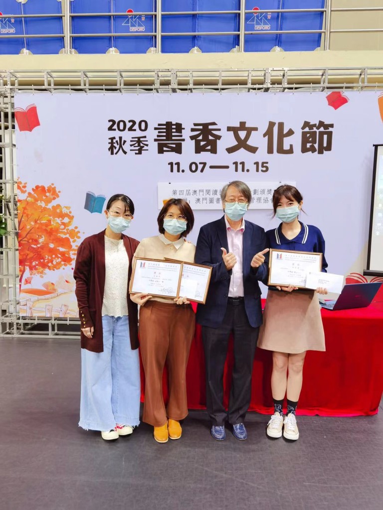 本校許梅婷老師榮獲中學組亞軍兼獲成就計劃獎,並於頒獎禮上分享本校之閱讀推廣以及「停課不停學」期間網上閱讀策略和點子。而馬嘉麗老師則獲中學組最多活動獎。劉慧敏主任參加由澳門圖書館暨資訊管理協會主辧、澳門攝影學會協辦的第十二屆「照出閱讀新角度」閱讀攝影比賽,憑作品「父女的角度」榮獲會員組亞軍。