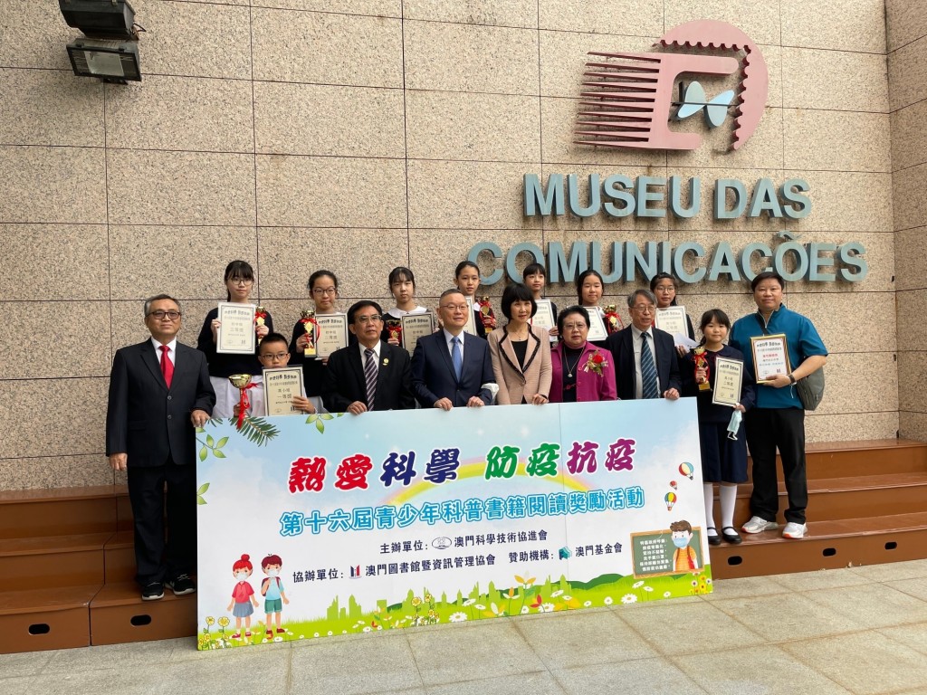 “第十六屆青少年科普書籍閱讀獎勵活動”頒獎禮於今天在澳門通訊博物館舉行,本校共有10位同學獲獎,為眾校之冠,獲頒“優秀團體獎”,而各得獎同學獲頒發獎狀、獎盃及書券。獲獎同學名單如下: