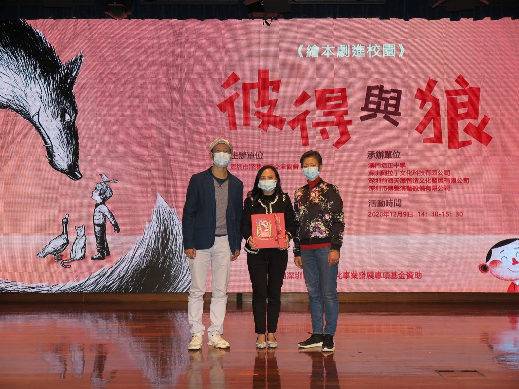 由深圳市宣傳文化事業發展專項基金資助,深圳市深港文藝交流協會主辦、深圳市少兒IP老墨家族承辦的粵港澳文藝交流專案——「彼得與狼」繪本劇進校園活動,昨天下午在本校舉行,為小四年級學生帶來了一場精彩的演出。