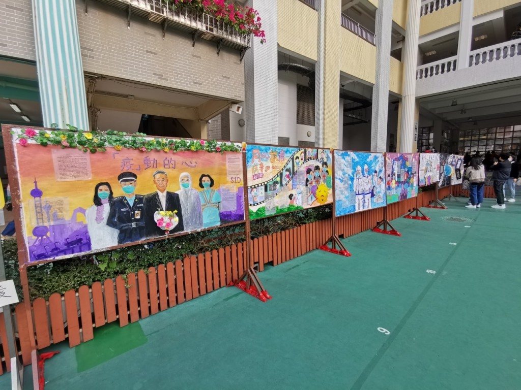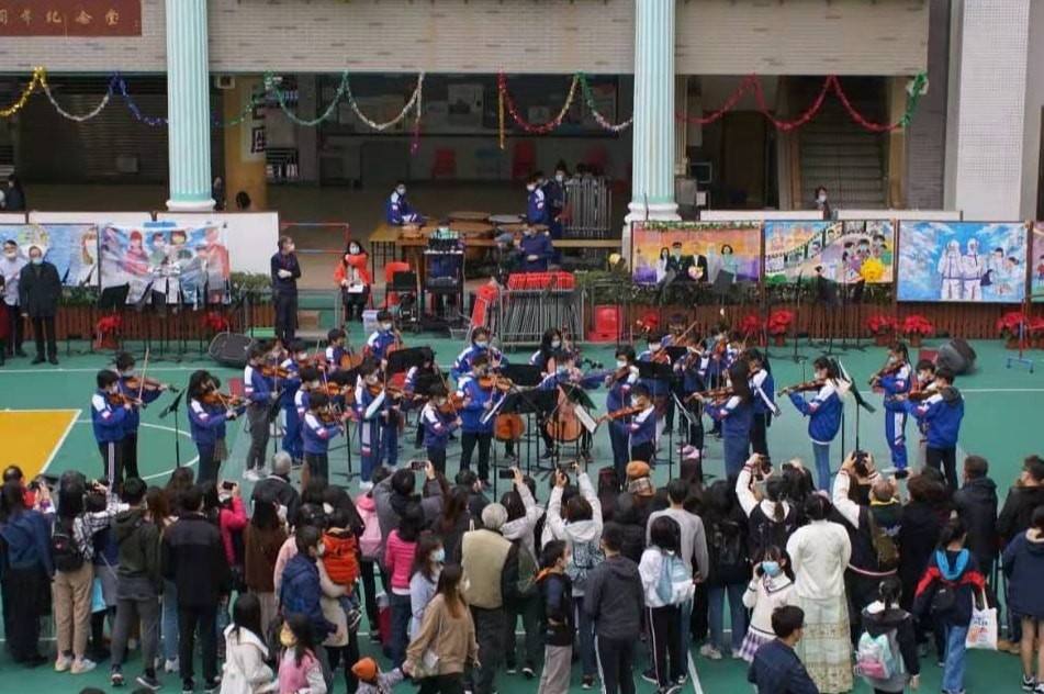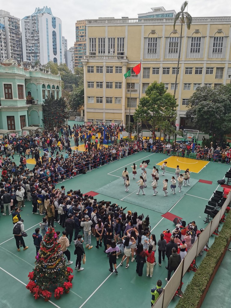 全校今早舉行聖誕慶祝會,各課室一片歡樂。中學壁報比賽作品今天在操場展出,各班設計別具特色,表達齊心抗疫之主題。今年的聖誕園遊會,為減少聚集,特分為上、下午舉行,遊戲攤位甚受歡迎。舞蹈隊、音樂學社、弦樂團、管樂團表演精彩節目,令校園添上和諧愉悅的氣氛。