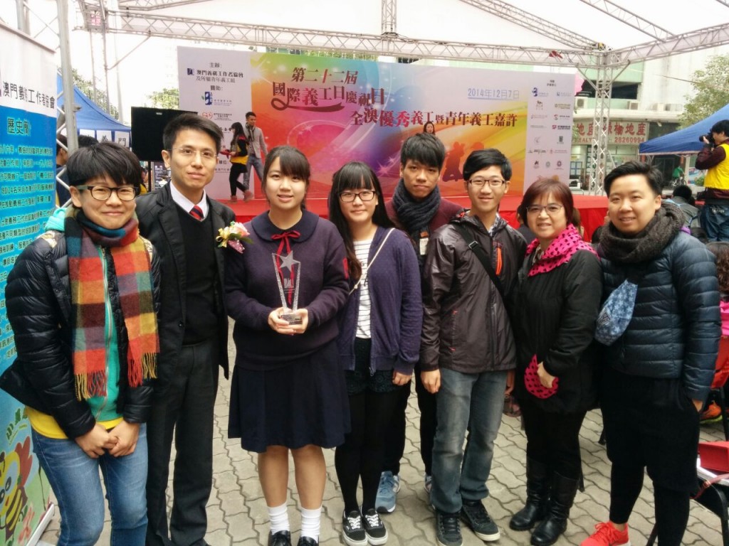 本校義工隊學生朱倩衡、唐瀚星、林雪穎、夏曉榕、李頊陞、梁曉愉、農旖瑩在全澳優秀義工暨青年義工嘉許典禮中獲獎,其中農旖瑩同學更奪得全澳十大優秀義工大獎。
