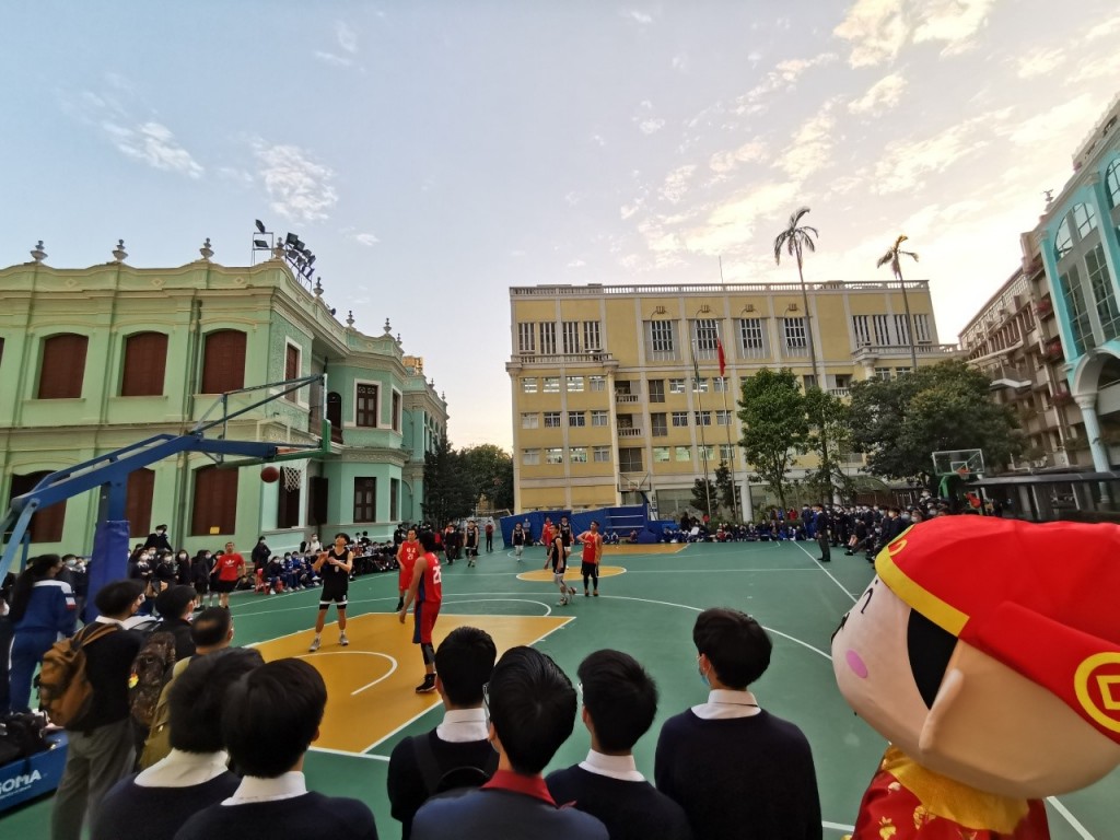 今日傍晚,班際籃球賽男子冠軍隊伍高三善班,與教職員隊作友誼賽。