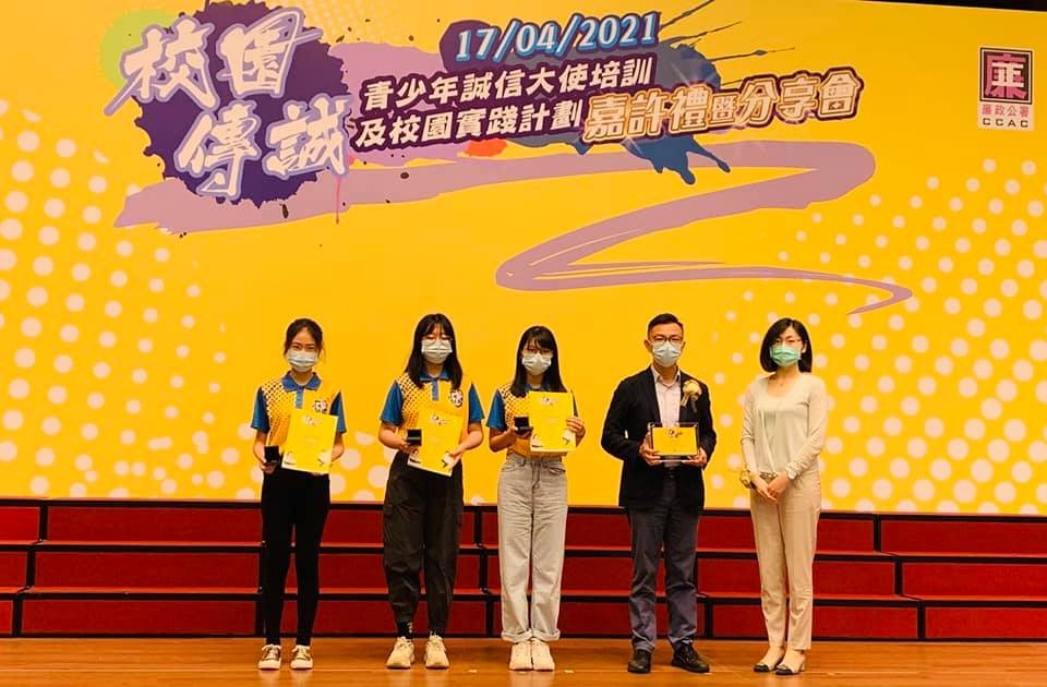 本校同學朱雅祁、許熙彤、張欣玥、鄭愛華、陳晞瑤參與由廉政公署舉辦的青少年誠信大使與校園實踐計劃,於4月17日的嘉許暨分享會上,獲得來自廉政公署的嘉許,更獲選為優秀隊伍之一。