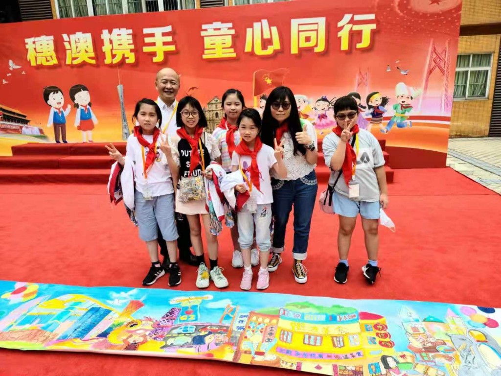 本校郭敬文副校長、黃慧儀老師,學生甄浠、鍾欣瞳、鍾佩諭、譚琪蓁、陳誠恩及多位家長,由本月11日起一連四天參加由國情教育(澳門)協會及永利關愛合辦之「童畫中國夢-澳門青少年繪畫作品展」暨澳門青少年大灣區文化之旅。在旅程中學生參觀了順德博物館、廣東省博物館、廣東科技中心、澳門青少年繪畫作品展開幕禮、世界文化遺產-開平碉樓,同時與廣州華師附中實驗小學聯誼共同繪畫一幅長達七米長的集體創作,又到新會澳門品牌十月初五餅家體驗館,同學們親身體驗製作杏仁餅的過程。