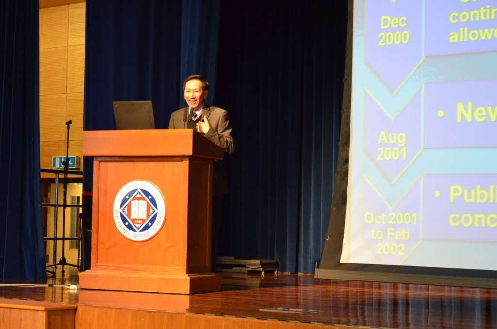 1月13日本校校友、澳門大學博彩研究所所長馮家超博士蒞校,為中學同學舉辦題為“博彩對澳門經濟與社會影響”的講座。馮學長從利與弊兩方面入手,為同學介紹了博彩業對澳門經濟及社會的影響,勉勵同學作為培正的學生,在讀書之餘還要關心國際時事的變化,放寬眼界,用心學習,才能擁有更好的未來。