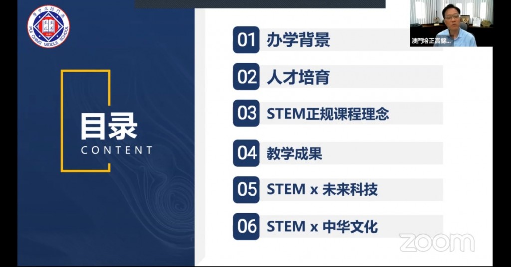 高錦輝校長獲中國長春東北師範大學邀請,於9月7日在線上出席「第一屆全球基礎教育論壇」,並發表專題演講,分享我校經驗。該論壇以「變革社會中的學校發展」為議題,與致力改善基礎教育品質的教育專家、學校校長、骨幹教師一同探討在全球化時代背景下,科學技術的進步與發展為學校教育帶來的衝擊與挑戰,如何能在變革社會中明確學校的責任,培養適應未來社會發展的創新型人才。高校長在「變革社會中學生發展與評價」的議題中,以《擁抱新時代發展 讓STEM教育開啟人才之門──以回歸後澳門培正中學教育經驗為例》為題作專題演講,與近一千名參與直播的專家學者分享。他指出科技不斷進步,全球化為教育帶來了新的挑戰與機遇,本校結合校情而進行校本特色之STEM教育,培養未來德才兼備的人才,以及分享在國家提出的「培育創新人才」及「傳承中華文化」等目標方面所取得的教育成果,引證在新時代之下適切之教育能培養未來社會發展人才的關鍵。