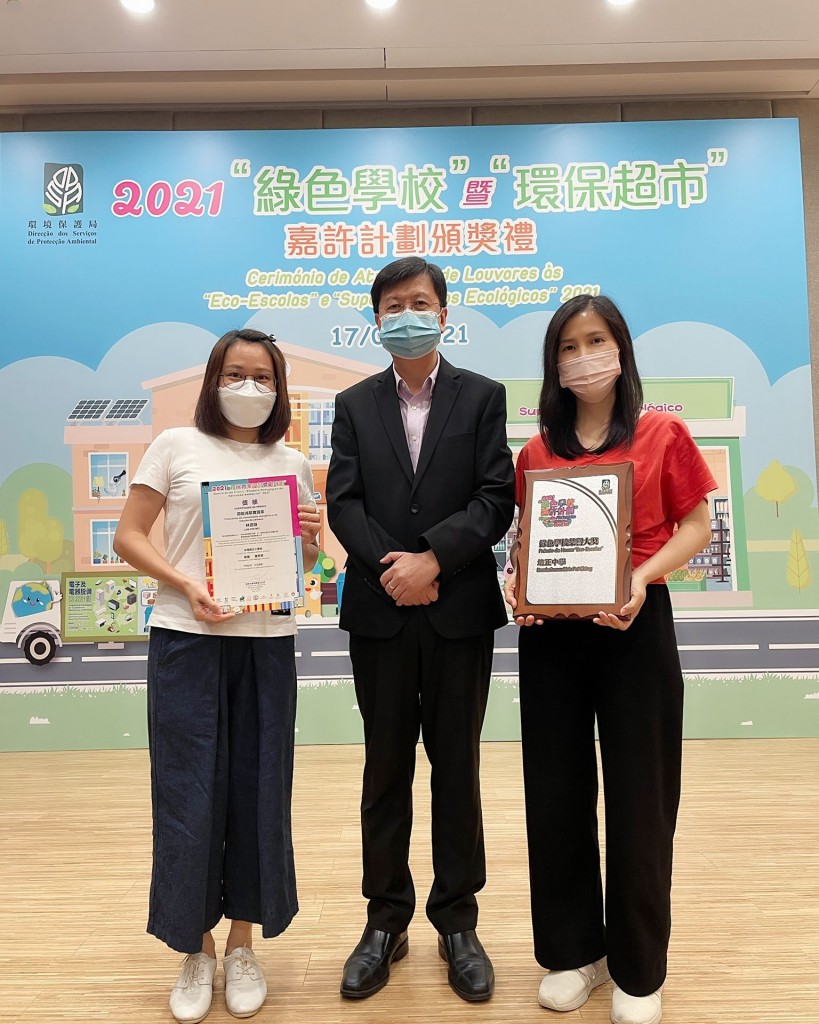 本校榮獲環境保護局主辦的2021綠色學校嘉許計劃中之“綠色學校榮譽大獎”,此外,本校陳麗玲及梁艷紅老師獲得“環保校園嘉Fun獎”,林潤薇老師獲得“環保教案設計獎勵計劃”幼稚園及小學組別優秀奬。