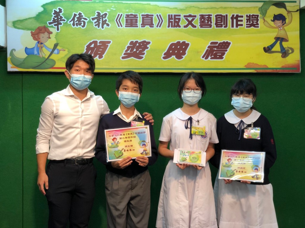 本校學生初二善班黃子㦤同學榮獲由華僑報主辦二零二一第一、二季「華僑報《童真》版文藝創作獎」寫作優異獎,初一望班梁正樂、初二愛班許庭芝同學獲得寫作優良獎。