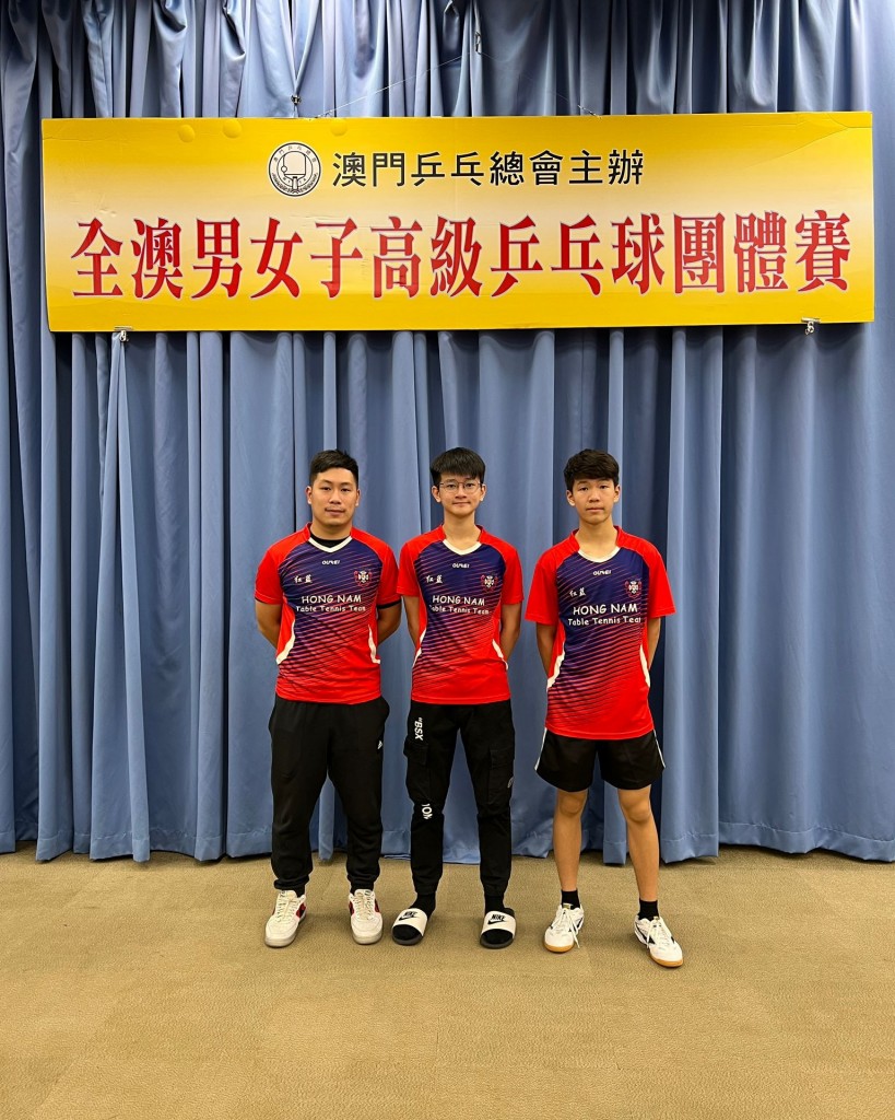 日前舉行之全澳男女子高級乒乓球團體賽,紅藍A麥天恩、黃奕瑾和校外導師梁旭南,獲得男子組第三名。