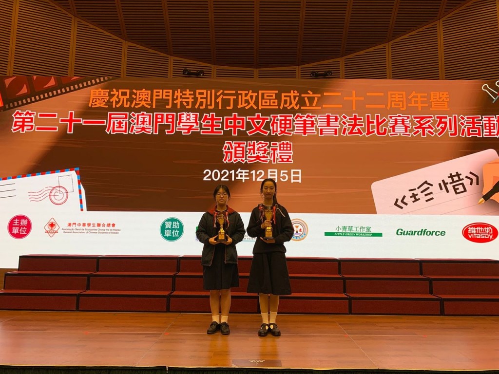 本校同學早前參加由澳門中華學生聯合總會主辦的“第二十一屆澳門學生中文硬筆書法比賽”,獲取佳績。特優獎及一等獎之同學獲邀出席頒獎典禮。