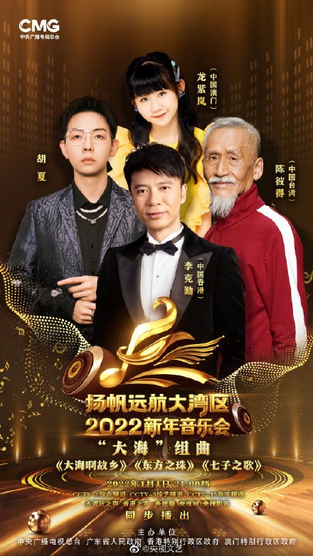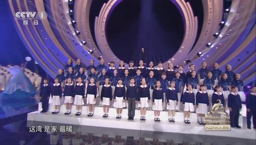 小學合唱團26位學生在王穎瑩老師、陶仙蓉老師、何裕冠老師的帶領下,前往橫琴參加中央廣播電視總台《揚帆遠航大灣區2022新年音樂會》的節目錄製。其中值得讚賞的是,同學們在面對導演組安排的節目做緊急調動時,能夠表現冷靜態度並認真的學習新歌,以最快速度的順利完成了錄音及演出任務,表現出色。最後與歌手孫楠、珠海橫琴第一小學合唱團一起合作,成功表演了音樂會的壓軸原創作品《夢灣》。圖為龍紫嵐同學演唱《七子之歌》、《大海啊 故鄉》的精彩瞬間,小學合唱團參與演唱《夢灣》參加節目的精彩瞬間。
