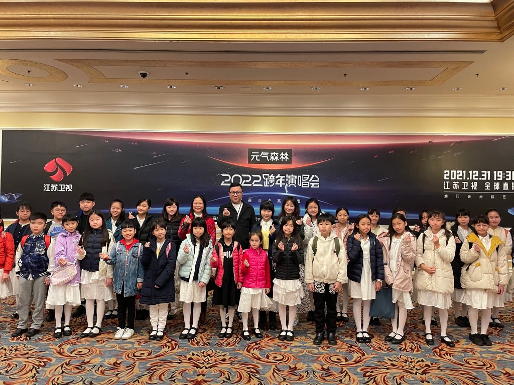 我校初二級龍紫嵐同學,及中小幼部分學生獲江蘇衛視邀請,參加了在金光綜藝館舉行的「領航2022跨年晚會」。此跨年晚會在去年12月31日晚上向全球直播,晚會獲得全網影響力第一,收視全域第一,全網熱度第一的好成績!