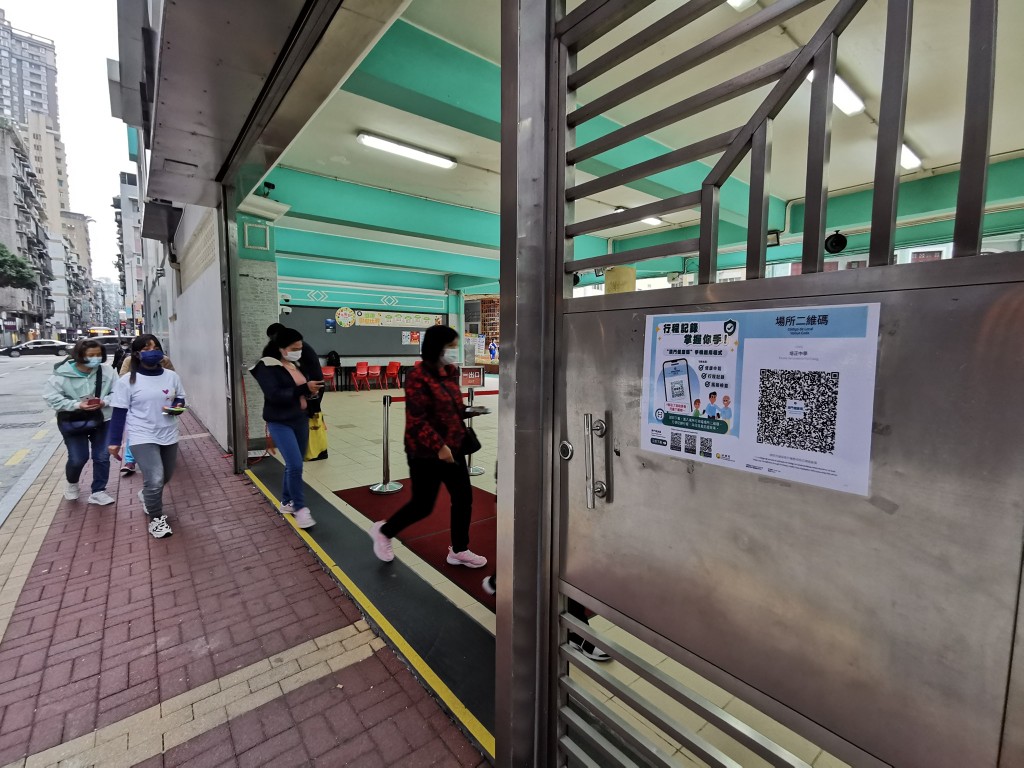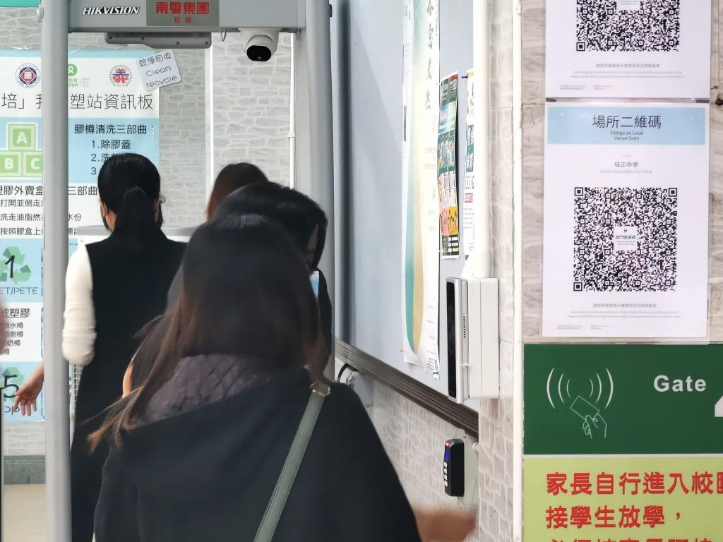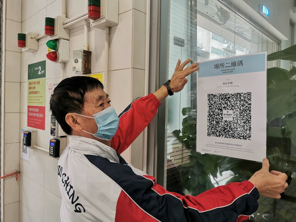 部分來校接送學生的人士已使用「澳門健康碼」手機應用程式,掃描已張貼的本校「場所二維碼」,記錄行程。