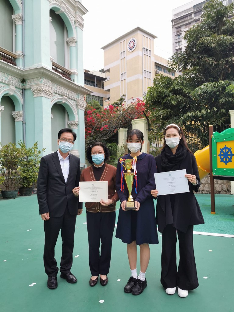 本校高二望班鄭愛華同學參加由澳門理工學院舉辦之第二十屆全澳英語演講大賽暨第二十七屆「21世紀杯」全國英語演講大賽澳門分區賽取得高中組別第三名。