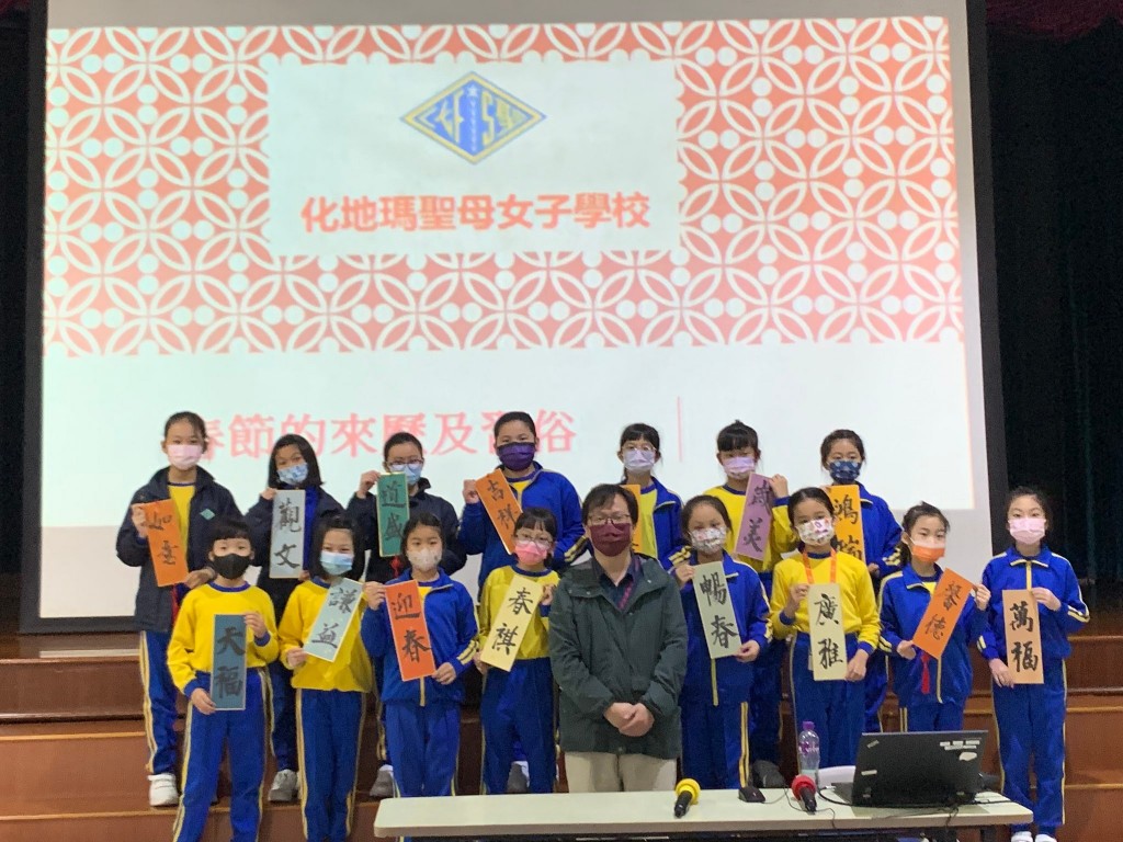 本校中華文化館主管鍾春暉老師,日前應化地瑪聖母女子學校邀請,開設了兩場講座,向該校小四學生介紹春節的來歷與南北習俗;向初一二級學生介紹北宋文豪蘇軾的美食人生之旅。