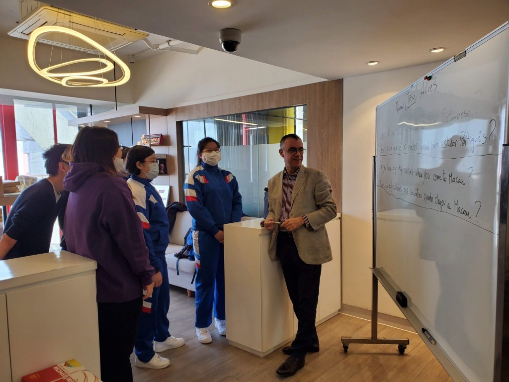 本月初安排了澳門城市大學商學院院長José Alves教授撥冗與同學們展開長達兩小時的葡語交流活動,同學透過真實對話,把握機會練習聽力及口語,逐步建立使用葡語交流的信心。同時,院長亦分享本地和葡國的升學資訊,葡國當地的文化和背景,加深同學們對葡國的認識。此次交流同學們表示獲益良多,期待更多外出交流的機會,大家繼續加油!Força!