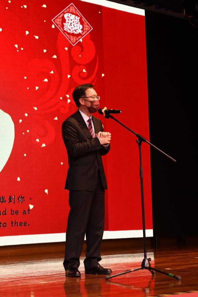 高錦輝校長、同學會黃漢堅會長、教職員會鄭國康主席分別致詞,祝願新年如意吉祥。與會者互道新春祝福,喜氣盈門。