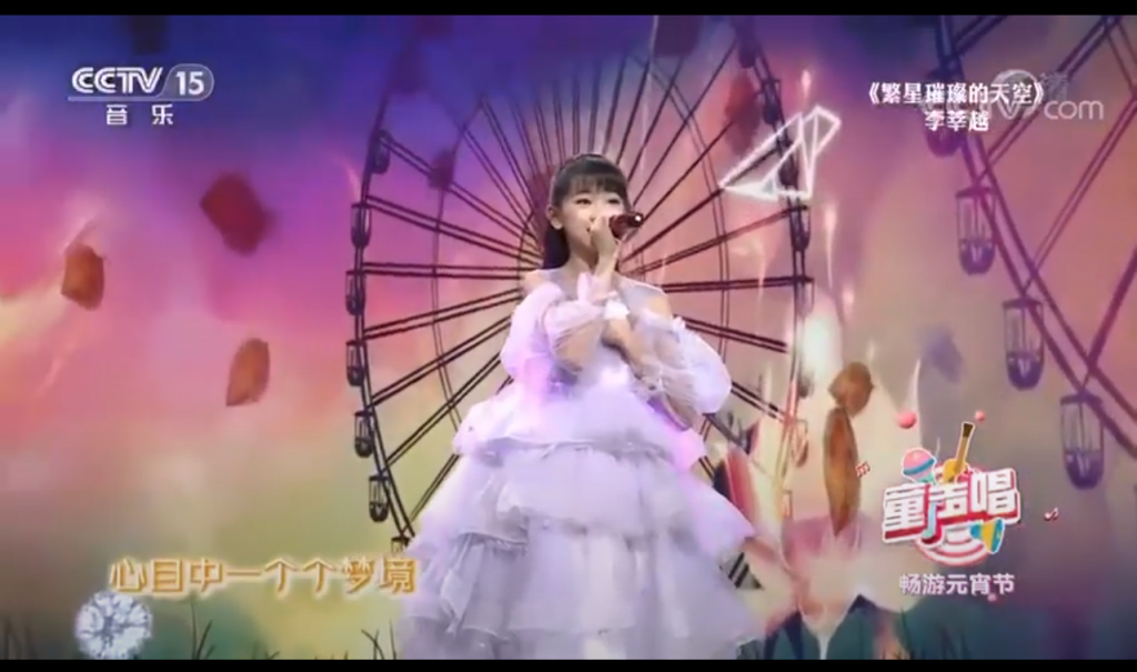 我校初一學生、中學舞蹈團成員李莘越,獲邀在中央電視台CCTV15「童聲唱」欄目《暢遊元宵節》中,演唱歌曲《繁星璀璨的天空》,表現出色,獲高度評價。