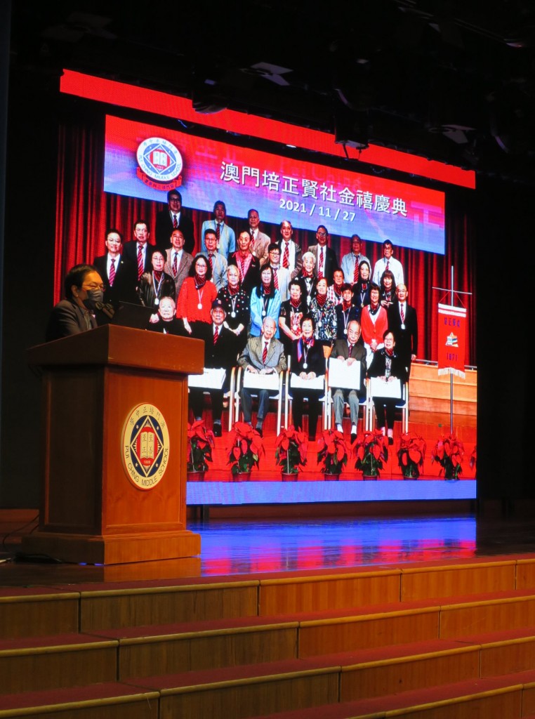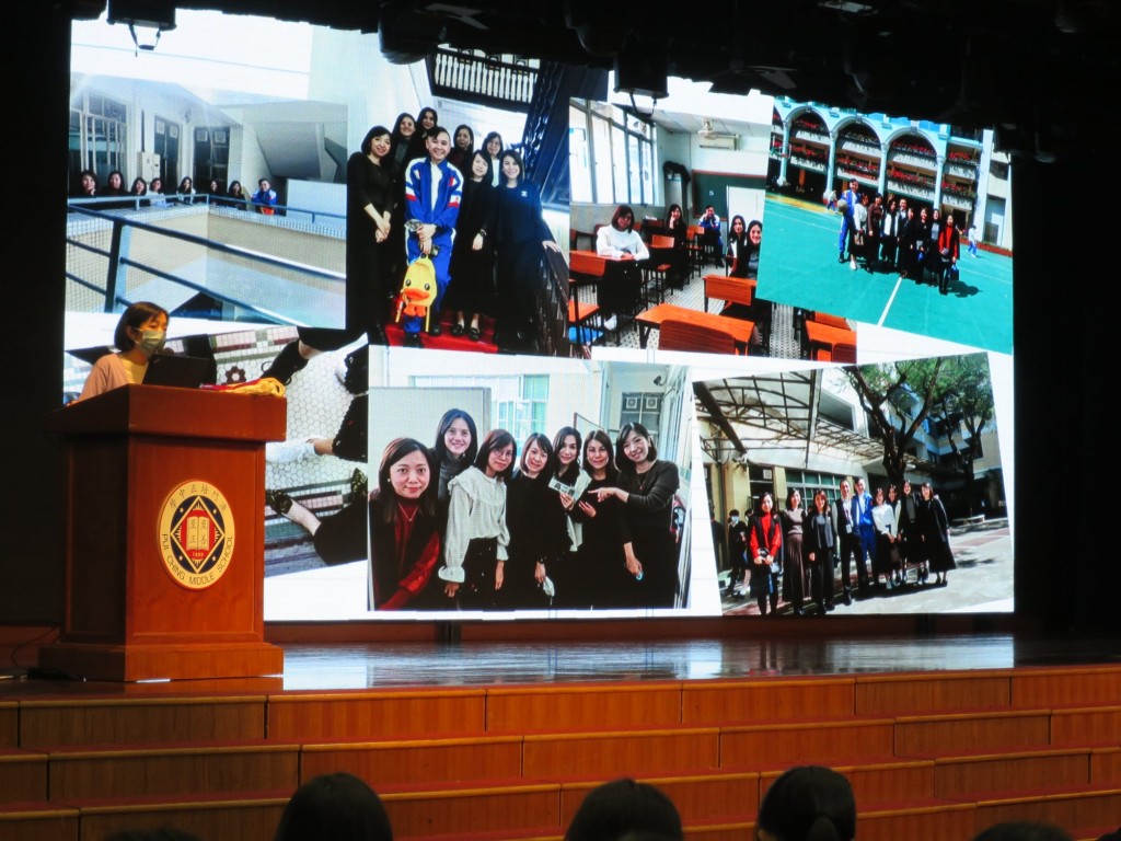 今日上午,澳門培正同學會黃漢堅會長到母校出席高三年級週會。會上,麥芷琪、郭艷玲、薛展充等校友老師介紹所屬各級社離校後所舉辦的聚會,分享當時師友共聚的喜悅。