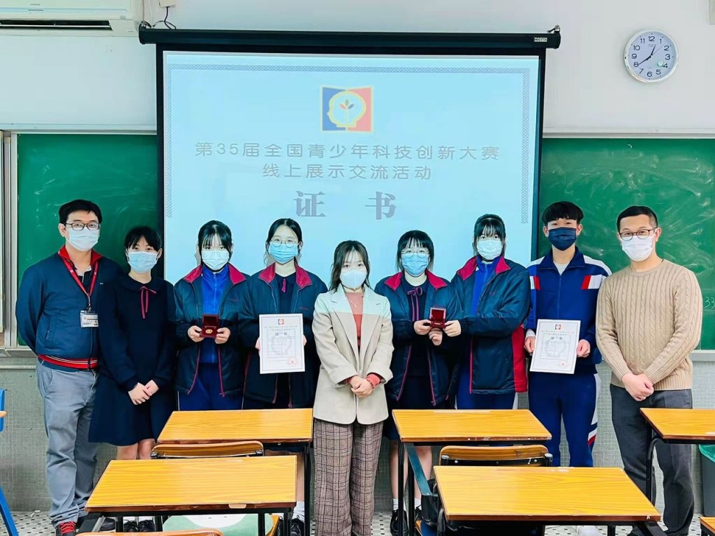 同學們在2020-2021全澳青少年(學界)創新挑戰賽的優秀科技實踐活動獲優異獎,獲得代表澳門的資格參加第35屆全國青少年創新科技大賽。但因疫情關係改為線上展示交流活動,同學們在線上交流活動中認真投入,從專家講者中得到啟發,獲益良多。成員包括: