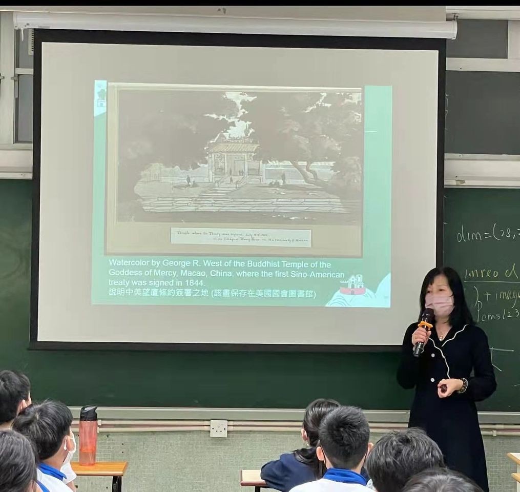 為增加同學對澳門小城在地歷史文化及社會脈絡的認識,本校安排初一同學於周二參加了由澳門基金會——“澳門記憶”文史網舉辦的2022年“記憶沙龍”校園專場(中學場)《從小廟說大事——澳門廟宇見證國家五百年》為主題的講座。