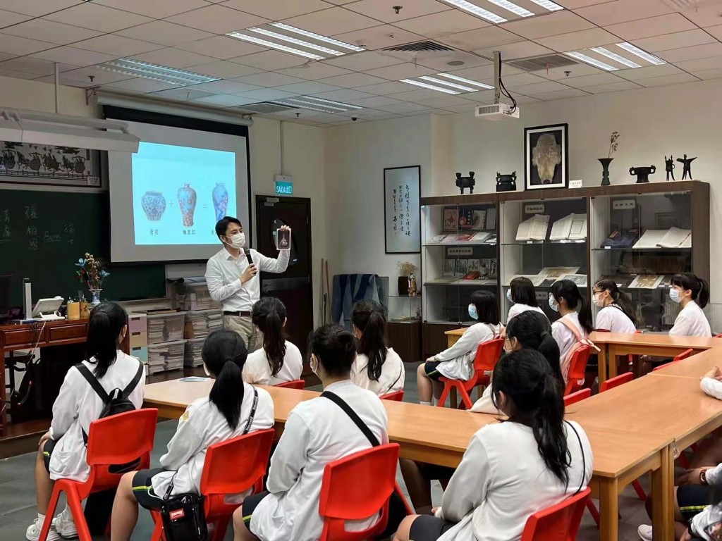 周六上午,澳大附中歷史小組高中同學二十餘人,在黎舒琪老師的帶領下,來訪本校中華文化館,我校張柏恩老師分享了一場獨具匠心的「china 瓷」講演,簡介瓷器的歷史和獨特魅力,感受中華之美。高二善馮卓琳,高二愛梁愫、郭曉嵐、張博旼、麥詠渝,初三望周子瑩幾位同學協助導賞。