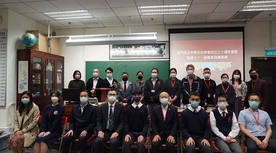 本月四日下午,培正史地學會慶祝成立三十周年,並舉行第三十一屆職員就職典禮。郭敬文副校長、梁永棠主任,楊珮欣主任一眾行政,史地學會指導老師,以及菜農學校江欽育副校長,師生代表均有出席。