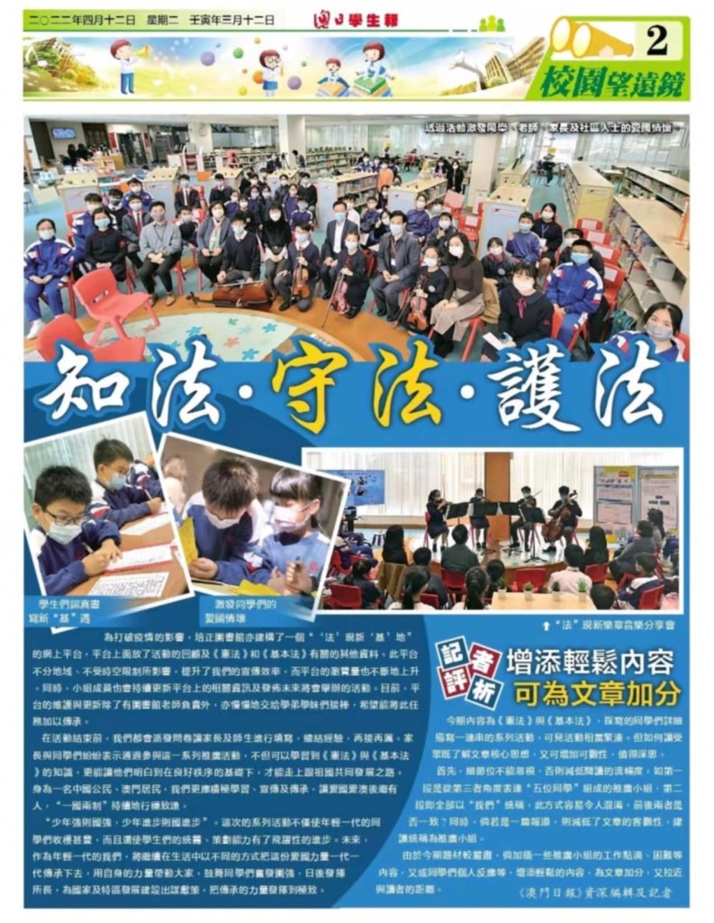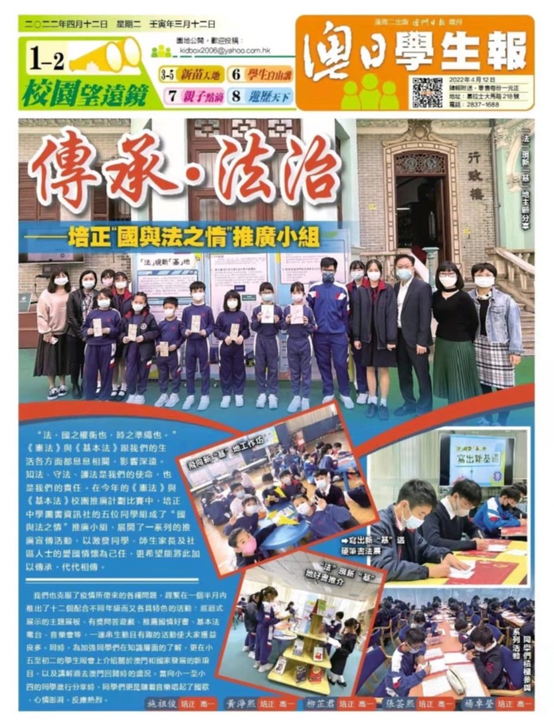 “法,國之權衡也,時之準繩也。”《憲法》與《基本法》跟我們的生活各方面都息息相關,影響深遠。知法、守法、護法是我們的使命,也是我們的責任。在今年的《憲法》與《基本法》校園推廣計劃比賽中,培正中學圖書資訊社的五位同學組成了“國與法之情”推廣小組,展開了一系列的推廣宣傳活動,以激發同學、師生家長及社區人士的愛國情懷為己任,更希望能將此加以傳承,代代相傳。