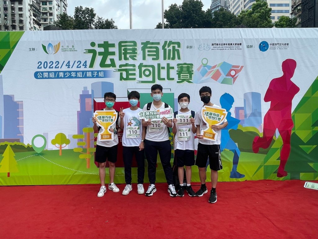 史地學會與法律研習小組成員周家弘、許立知、蔡彥蕎,黃淨熙、蕭聖桐、盧屬靈分別組隊參與市政署主辦,澳門基本法青年推廣大使協會承辦及中國澳門定向總會協辦的“2022「法」展有你—定向比賽”。是次比賽共有54支參賽隊伍參加,競爭激烈。其中周家弘、許立知、蔡彥蕎的總成績排行第四,成績優異。高一級圖書資訊社成員(邵琪俊、卓子俊、羅韶笙、文子聰、劉梓毅)亦組成了兩隊參加此次比賽,其中BIA默契三人組(邵琪俊、卓子俊、羅韶笙)表現優異,成績排行第七。