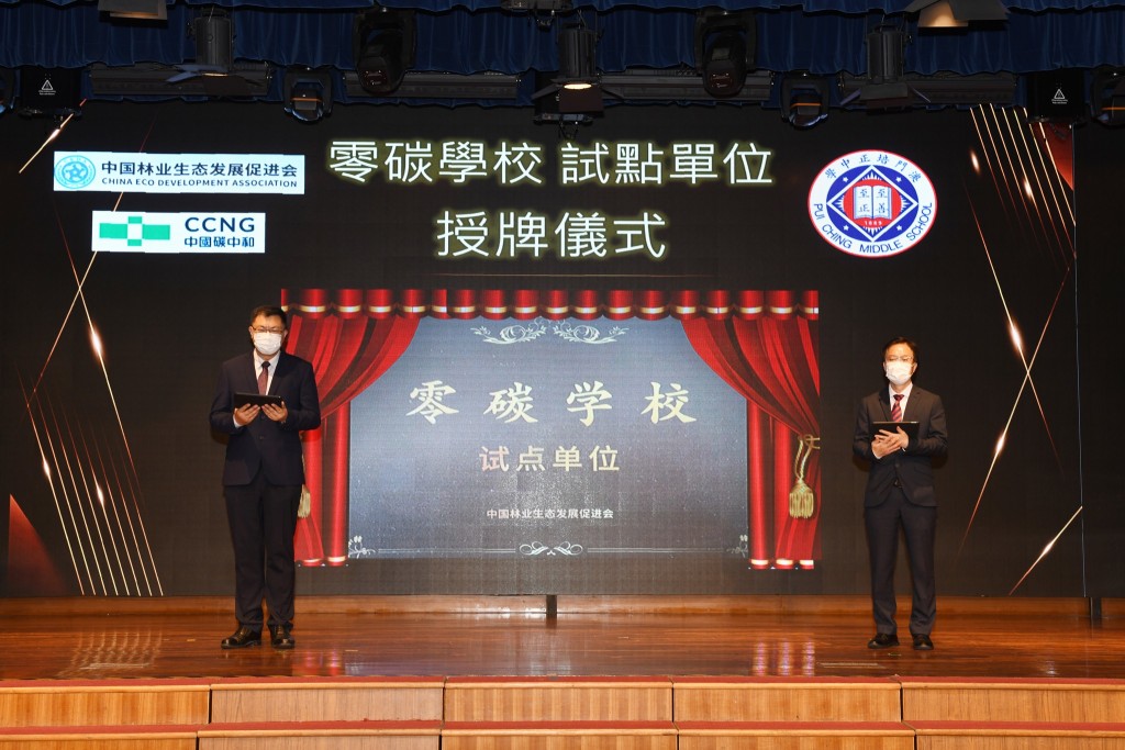 揭牌儀式簡約而莊重,由培正校長高錦輝,中國林業生態發展促進會、碳中和發展委員會周平教授主持。高錦輝回顧學校的環保工作,並呼籲師生身體力行參與減碳行動,例如減少使用塑料、節約能源,選擇綠色出行,或獲得經過核證的自願減排量,抵消自己的碳排放,成為「零碳公民」。他指出,「零碳公民」活動只是實踐低碳生活的開始,盼望在同學們心中播下生態文明的種子,培養綠色低碳理念,成為人類美好家園的積極建設者。此外,培正也在中國碳中和發展集團專家指導下,利用碳核算的方法學計算了校內的碳排放量,以便制定具體的碳減排計劃。