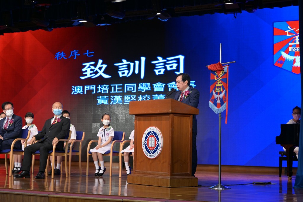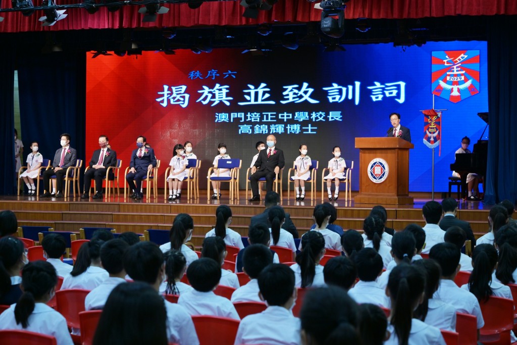 上午十時,典禮正式開始,望社社長王曉慧同學致開會詞,高錦輝校長揭旗並致訓詞,澳門培正同學會會長黃漢堅校董致詞勉勵,澳門培正同學會會員大會主席莫志偉校董、郭敬文副校長、陳敬濂副校長亦擔任主禮嘉賓。