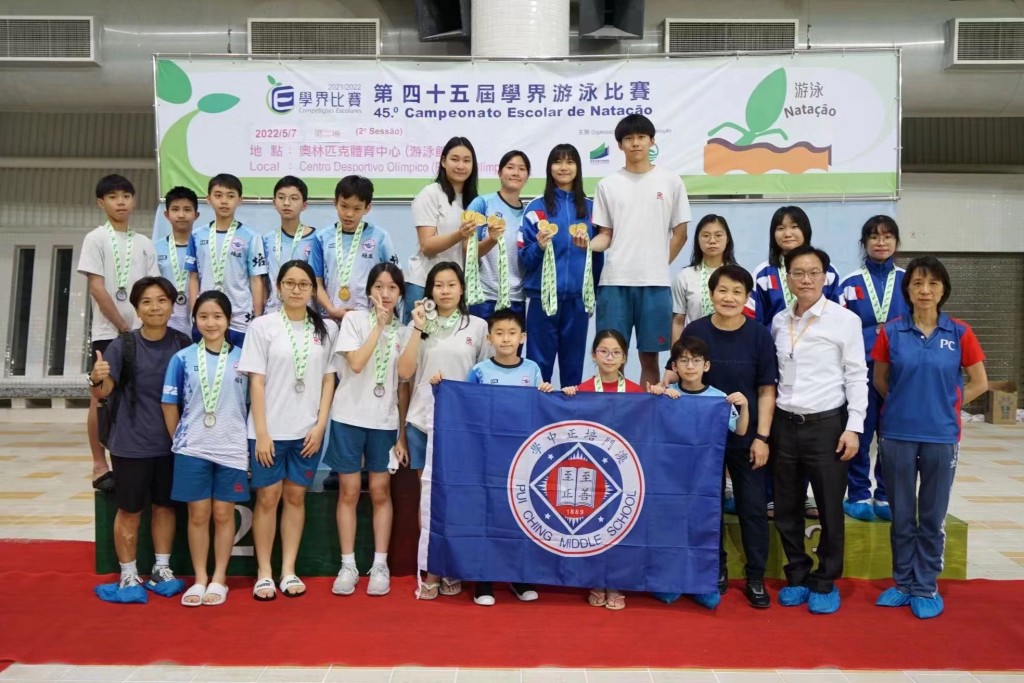 第四十五屆學界游泳比賽於5月7日在澳門奧林匹克游泳館完成最後一場賽事。總結今屆學界游泳賽兩場賽事的成績,我校泳兒們共獲23金、17銀、10銅,共50面獎牌,破7項大會記錄的優異成績。