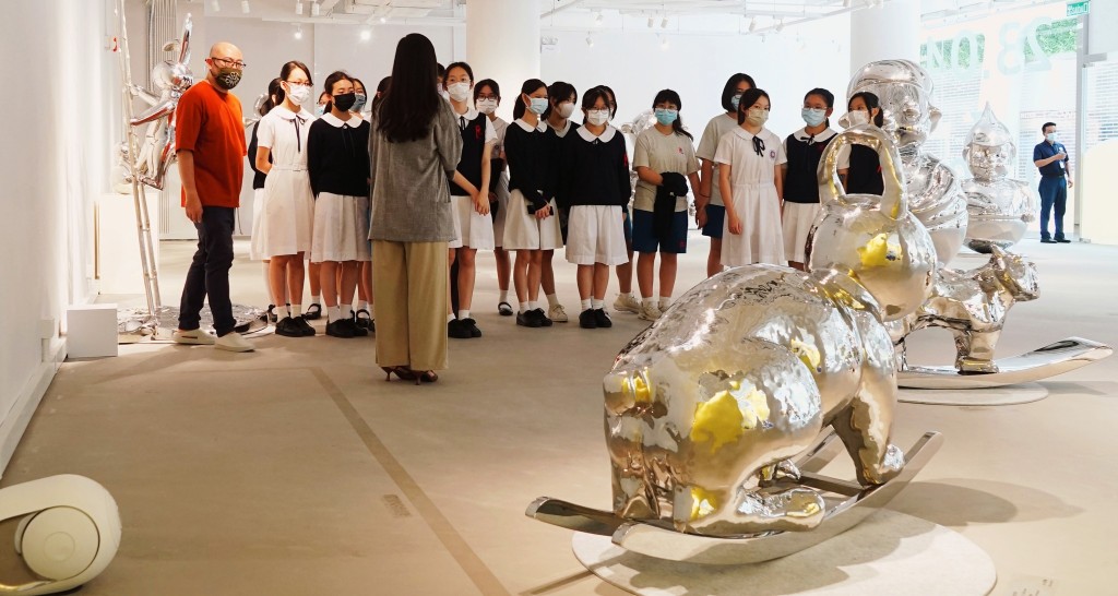 本校初二同學在5月5日由區頴斌老師帶領前往澳門葡京人酒店,參觀 「我是不倒翁 - 汪正虹藝術展覽」, 展覽展出20多件巨型不銹鋼雕塑,作品以杭州著名藝術家汪正虹的童年經歷和感受為創作理念,同時融入近年對外界環境的感受和思考,其間學生們聆聽講解並與不倒翁雕塑互動,上了一堂活潑生動的藝術課。