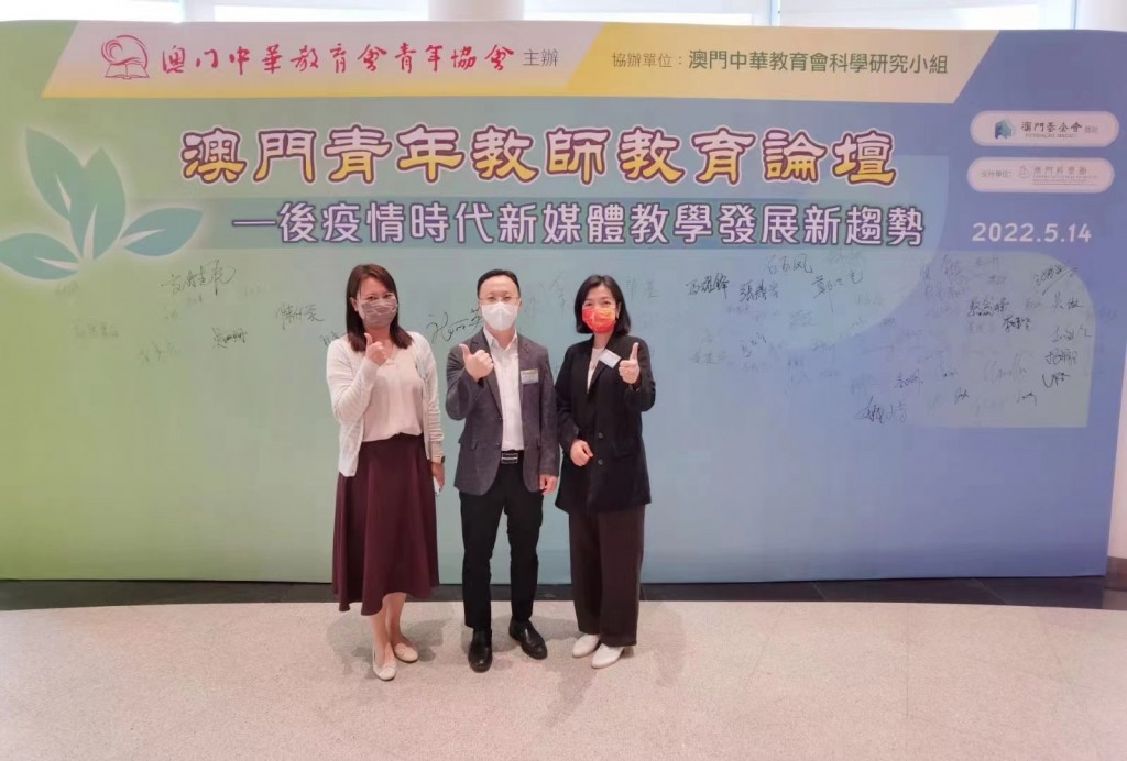 駱劍峰副主任、麥芷琪老師和余靜雯老師參加澳門中華教育會青年協會主辦的「澳門青年教師教育論壇--後疫情時代新媒體教學發展新趨勢」。駱劍峰副主任代表「智慧教園建設組」發言,就智慧校園建設內容及推廣作出總結和建議,認為推廣須循序漸進,以學生個性化教育為目標,並以教師減輕負擔為設入點作長遠規劃。另外,余靜雯老師代表「中學教育組」發言,提出老師可以利用不同網上學習平台,吸引學生的學習興趣和提高學生的學習動機。同時,老師亦能利用不同的網上平台學習,提高專業知識,以收教學相長的效果。除學習以外,老師可多利用微信及其他通訊軟件多與學生溝通,建立良好的師生關係,尤其是在後疫情時代,更要多關心學生的身心健康。