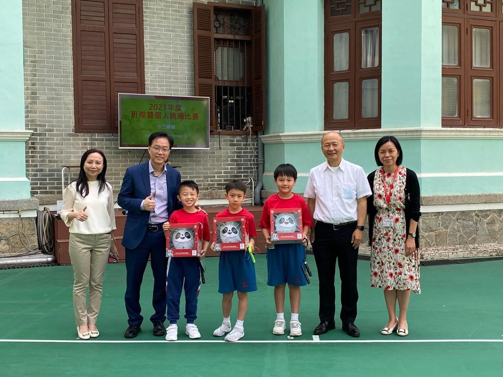 為鼓勵學生多做運動,鍛鍊身體,本校在這幾天的早操時段給小一至小四級學生舉行跳繩比賽,讓他們把日常的練習成果發揮出來,比拼場面熱鬧。每級成績最優之首三名小學生,獲頒冰墩墩乙隻,延續奧運精神,同學們無比興奮。