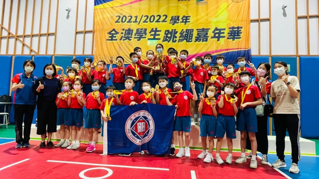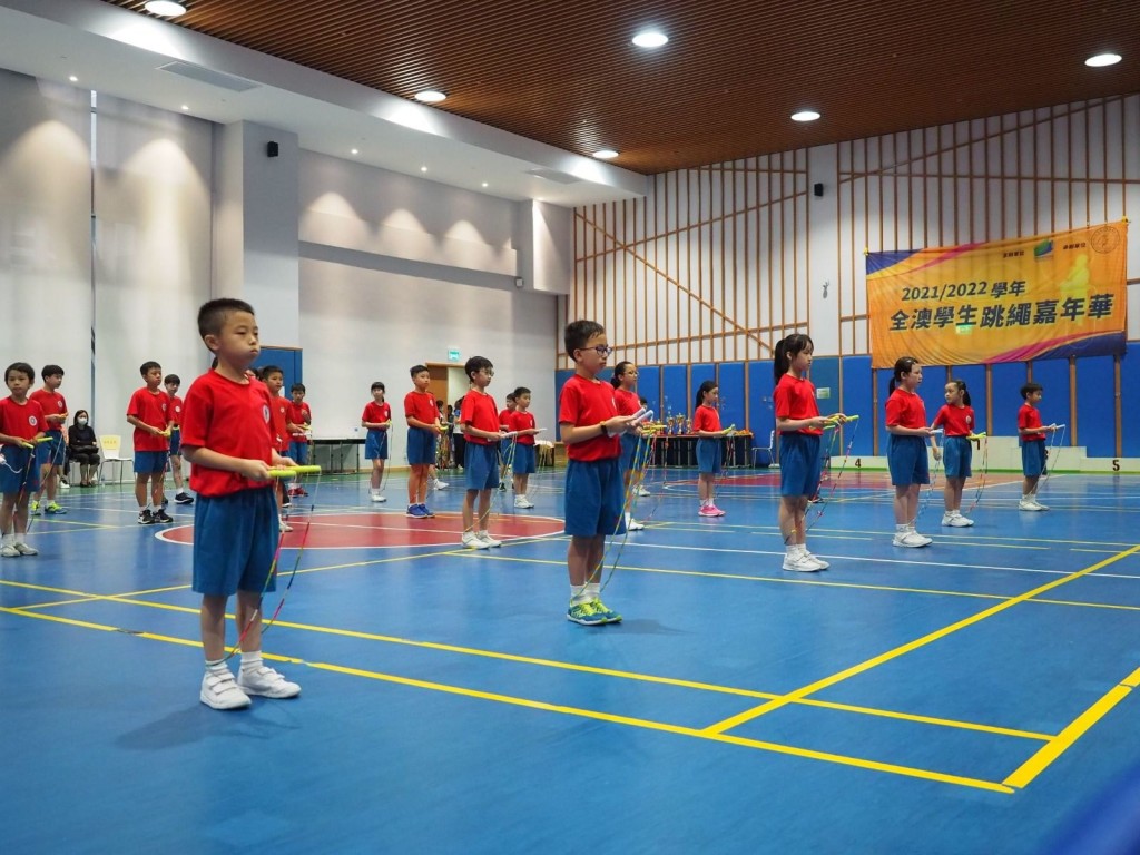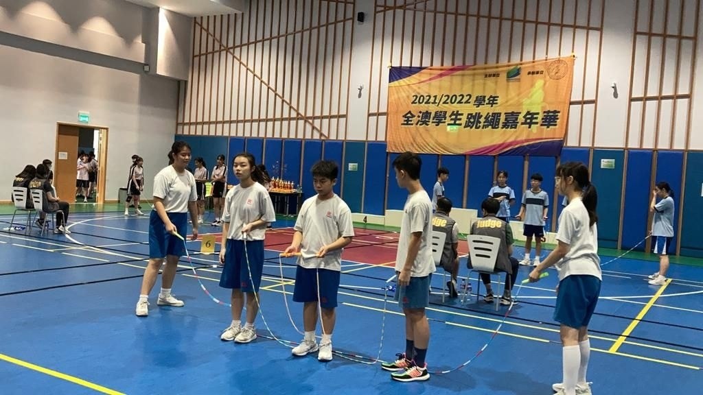 由教育及青年發展局主辦,中國澳門跳繩總會承辦的2021/2022全澳學生跳繩嘉年華比賽,於6月11-12日在石排灣公立學校體育館舉行。賽事共有本澳13所學校348名學生參加,我校30名小學同學和9名中學同學組隊參加比賽。