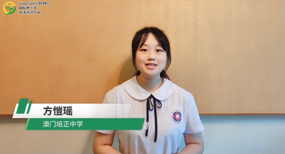 高一望班方愷瑤同學為澳門學校學生代表,以普通話作開幕致辭;方同學在開幕式上感謝大會方搭建的交流平台,令各地青年可以進行「雲交流」,亦激勵熱愛演講的同學在是次活動中學有所成。