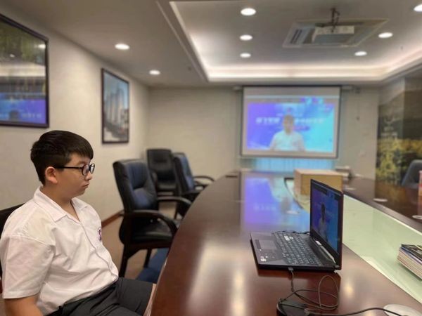 本校獲獎學生及老師線上參與,小五正莫俊謙同學代表發言,介紹自己作品的創作概念,以及對夢想及繪畫的意義。