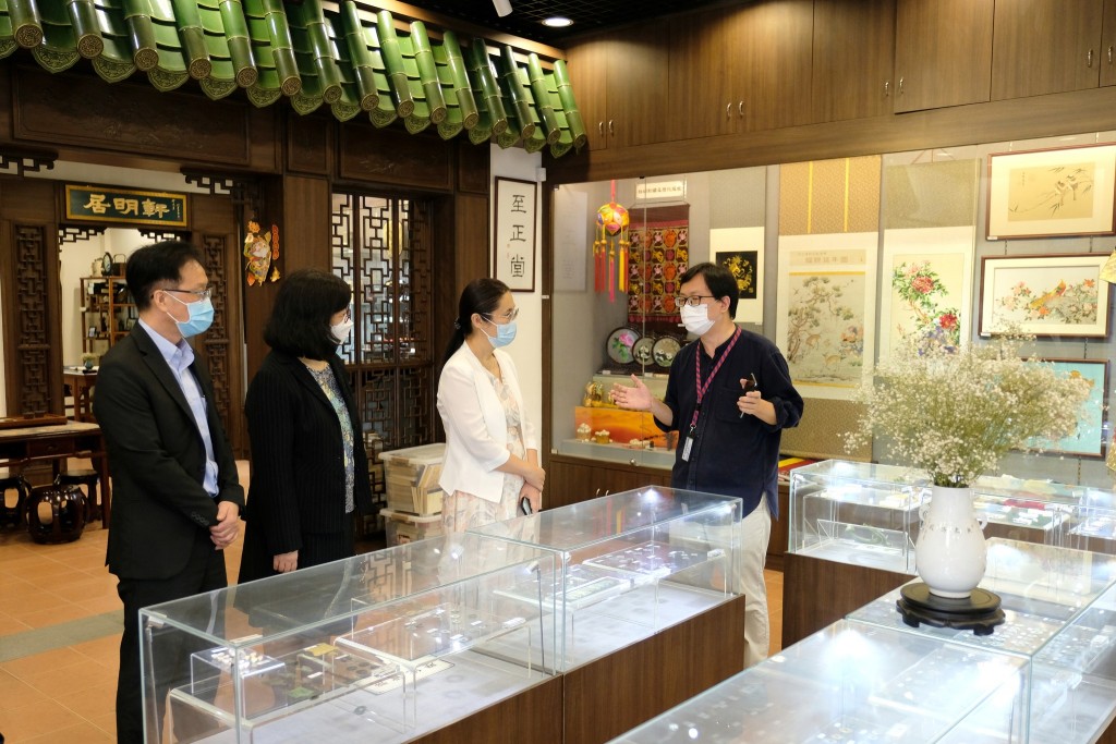 一行亦參觀了創新科教館及中華文化館。其中,閔好年老師簡介了創新科技教育發展歷程,包括發展期間所遇到的挑戰及如何克服等,並介紹了學生作品。鍾春暉老師則講解中華文化館的豐富館藏,並介紹了本校的中華文化教育概況。