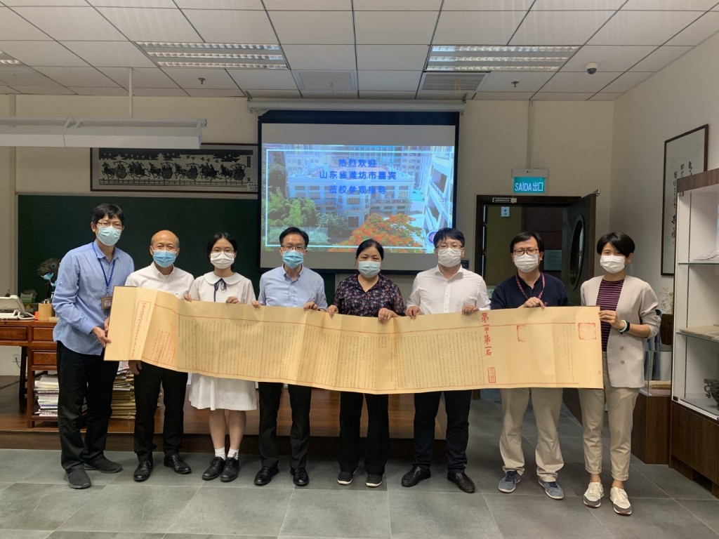 濰坊市委台港澳辦主任劉金鳳及濰坊魯台會服務中心投資服務一處處長吳長棟昨天(22日)下午到訪本校,在高錦輝校長、郭敬文副校長和黃健主任帶領下開展參觀交流。