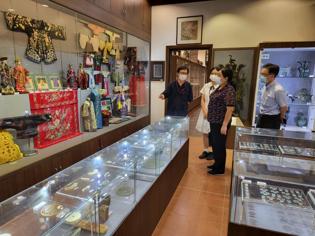 來賓先後參觀中華文化館和創新科教館,先由鍾春暉老師講解珍貴的館藏,介紹到一些山東省濰坊諸城的特色館藏時,來賓們甚感興趣,駐足欣賞一番,並表示十分親切。而在創新科教館,閔好年老師亦講解本校創新科教方面概況,以及介紹學生作品等。