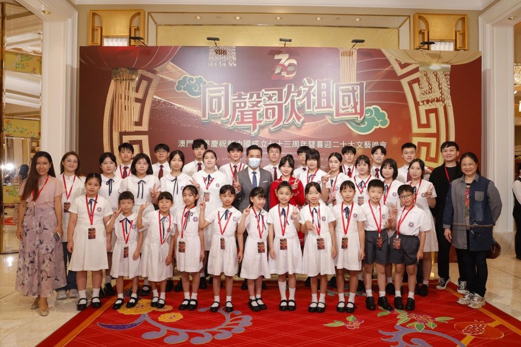 由中聯辦宣文部、特區政府文化局指導,由多個社團組成“雙慶”籌委會聯合主辦的“同聲歌祖國——澳門各界慶祝新中國成立七十三周年暨喜迎二十大文藝晚會”,澳門各界代表人士歡聚一堂,逾三百位演員,透過一系列精彩及多元化表演節目,展示澳門回歸祖國以來欣欣向榮的美好景象。
