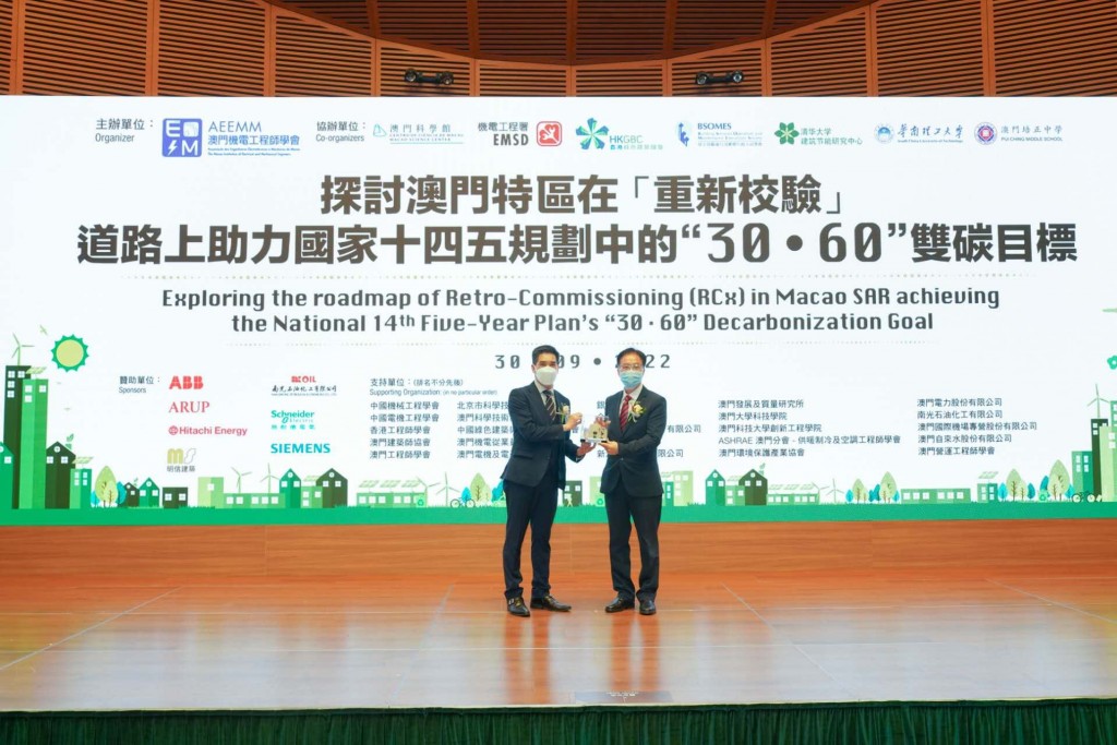 為讓同學了解澳門特區及粵港澳大灣區三地在節能減排方面的發展,本校安排師生於今日(30日)下午到澳門科學館會會議中心會議廳,參加由澳門機電工程師學會主辦的探討澳門特區在「重新校驗」道路上助力國家十四五規劃中的“30•60”雙碳目標技術研討會。是次邀請了多名來自國內、香港及本澳的專家學者,就本次主題作出專題演講,報告及經驗分享,內容涉及AI如何助力大灣區實現雙碳目標、智慧能源及碳排放調控等主題。
