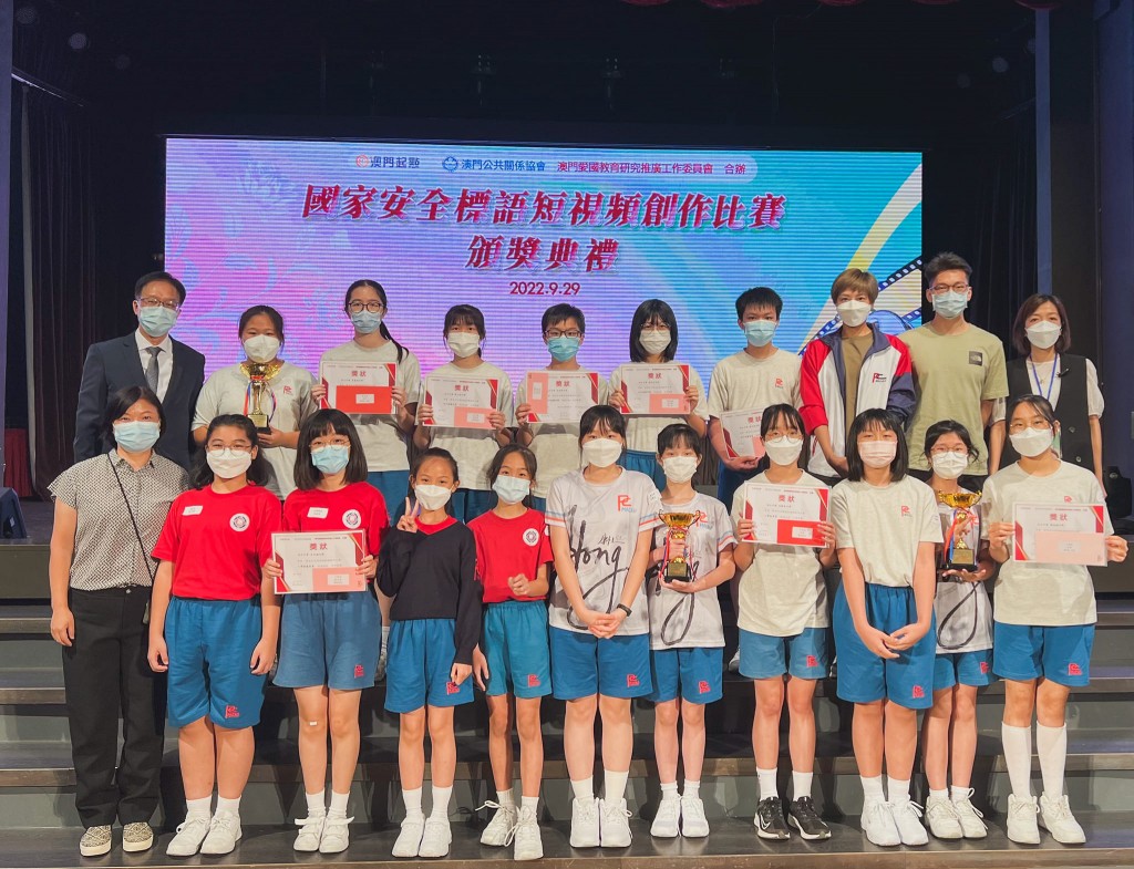 為推動本澳青少年充分認識和維護國家安全的重大意義,傳承並弘揚愛國愛澳核心價值,澳門起點、澳門公共關係協會、澳門愛國教育研究推廣工作委員會合辦了「國家安全標語短視頻創作比賽」。是次活動得到各校師生踴躍參與,共收到逾二百份參賽作品,参賽學生近八百人。本校學生積極參與,表現出色,獲獎名單如下: