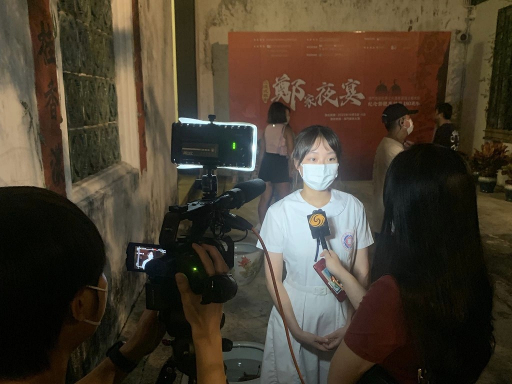 本校組織戲劇學會及歷史研習小組共21位師生出席,此行加深同學對家國情懷、澳門歷史的了解,同學十分投入,獲益良多。觀戲結束後,戲劇學會副主席張若詩同學接受鳳凰衛視採訪。