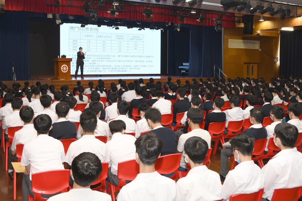 是次講座是澳門研究中心「澳門學堂」教育講座,由澳門大學金融及商業經濟學教授兼副系主任、數據科學理學碩士課程主任、澳門經濟學會副理事長李振國教授主講。講座以詳實的數據說明了近年澳門經濟情況,淺析澳門經濟適度多元化的發展路向,展望橫琴粵澳深度合作區 (深合區)和粤港澳大灣區發展對澳門中長期發展的助益。李教授是本校校友,這次為學弟妹們做分享,倍感親切,他亦勉勵高二同學立定志向、積極進取,將來貢獻社會、建設澳門。
